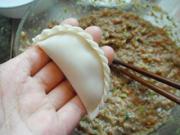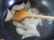 13. 煮至饺子浮起,即可捞出食用。14. 按上述蘸料调制一碗酱汁, 蘸着吃,味道更香。