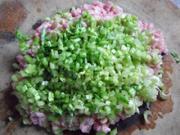 做法:1. 五花肉(三肥七瘦)洗净剁成肉糜。2. 芹菜洗净切成细末。3. 把芹菜末加到肉糜里。4. 剁至两者相融合。