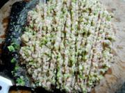 操作方法:将猪肉剁成馅,加2匙花椒粉、少许酱油、盐,加入葱末、姜末,最后倒入适当的熟油(以上可以根据自己的口味加)拌匀。将发开的木耳剁成末,加入肉馅中搅拌均匀即可。