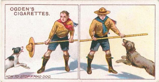 侦查人员如图拿一根手杖或者手帕甚至帽子都可以。狗在咬你之前总是会努力的攻击你的防御,这将给你一个击败它的机会。