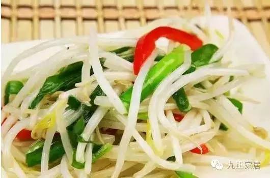 5 【豆芽】 鲜嫩,炒时速度要快。若在炒时放一点醋,则能除豆芽的涩味,并且还能保持其爽脆鲜嫩。