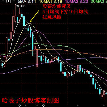 股票均线死叉是指5日均线下穿10日均线,这个时候就要注意风险了。