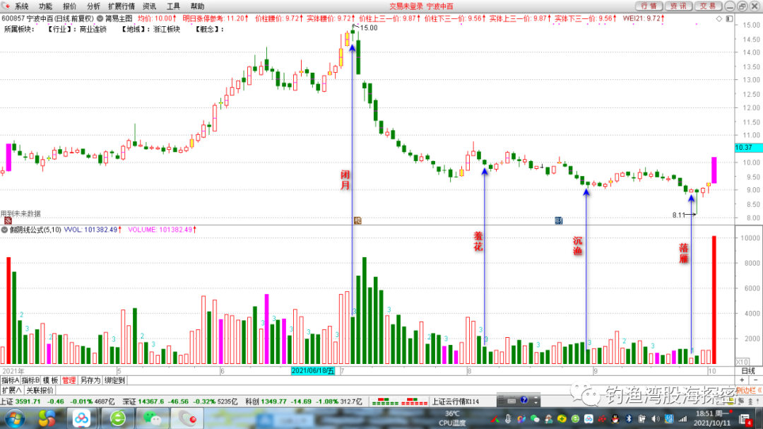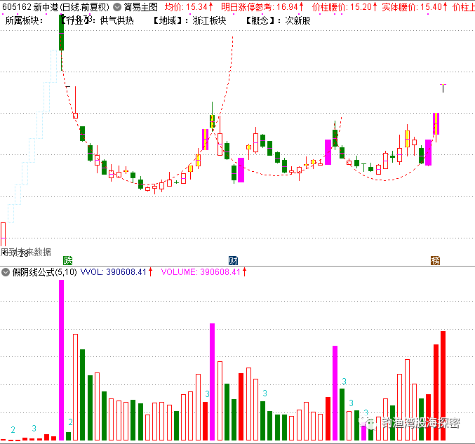 五、股海淘金   今日个人练习票有:605162新中港、600857宁波中百等。图例仅供观赏。