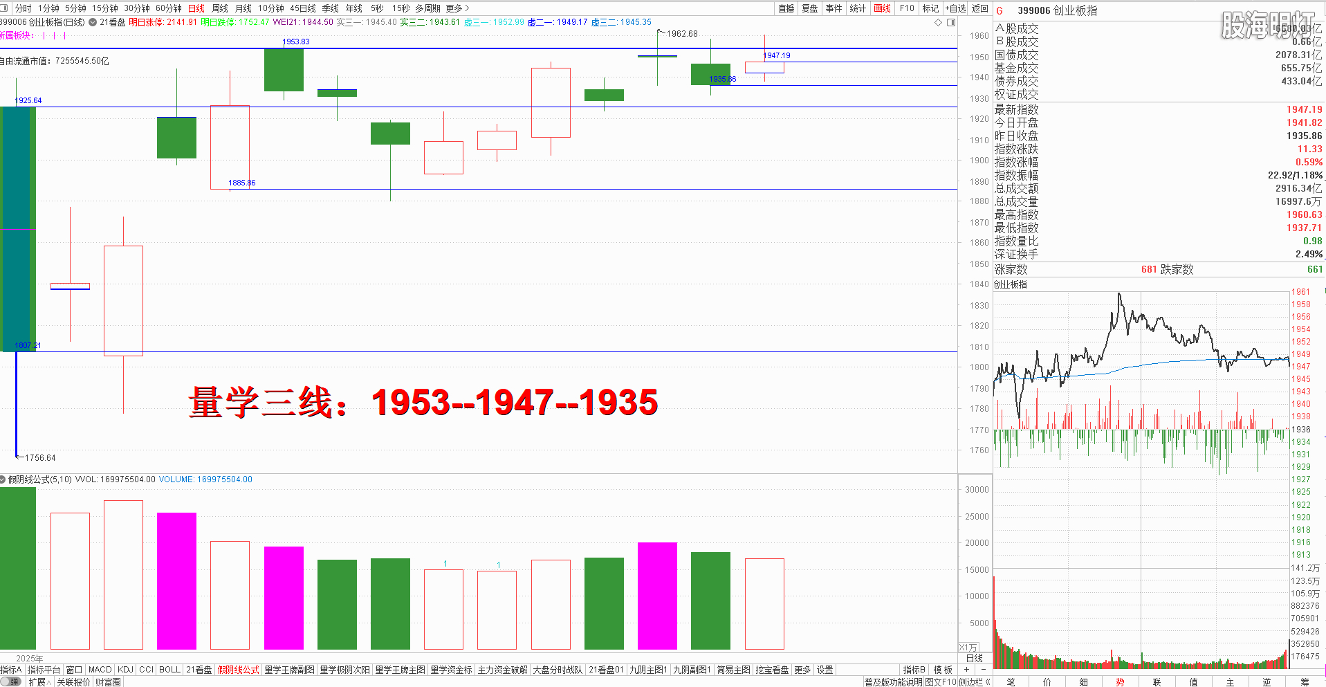 创业板今天收盘小阳十字星单枪,未能站上最近小凹峰1953点上方,对应量柱微缩量,周一站上凹峰泽强,反之则弱。量学三段以上达人依然可继续模拟训练“不理指数,精练个谷”;涨停趋势依然是量学“极阴次阳回马枪战法+凹里淘金战法”为主,今日收盘4只20CM;后势涨停趋势可继续模拟学习量学凹底淘金知识点+极阴次阳回马枪+康桥战法模拟训练,要特别训练出现首跌缩量,精准回踩重要量线出现有效次阳后出现量学刹车王牌柱知识点后,同时结合0407高量大阴实顶康桥站稳不破出现竞价零号跳空高开,这时结合量学跳空阳战法标准,一不小心就会出现中大阳甚至20CM知识点,次涨停趋势已经连续讲解多日了,有心人可以看看最近几天是否符合讲解的量学知识点要领,此涨停趋势后势还将继续延续,看不懂量学建构,不明白量学量波技术原理,切忌盘中盲目追涨杀跌,看不懂就不要强求。模拟训练一定要训练在自己认知之内的案例,看不懂的案例还需做到:宁错过,不做错。一般人最好耐心模拟学习量学不见次阳不动心知识点。 周一量学【创业板三线线】:1953--1947--1935。